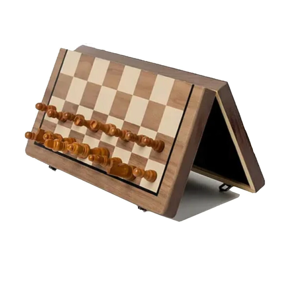 magnético de viaje: Este conjunto 2 en 1 de doble función cuenta con un tablero de 39 cm con cuadrados de 4,2 cm. Incluye 34 piezas de ajedrezy 24 piezas de damas, además de 2 reinas extra para cada juego.