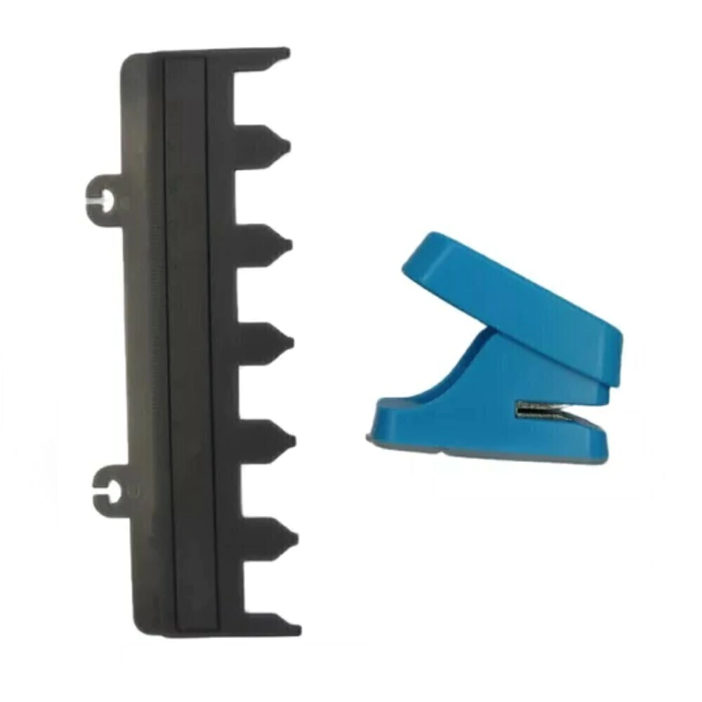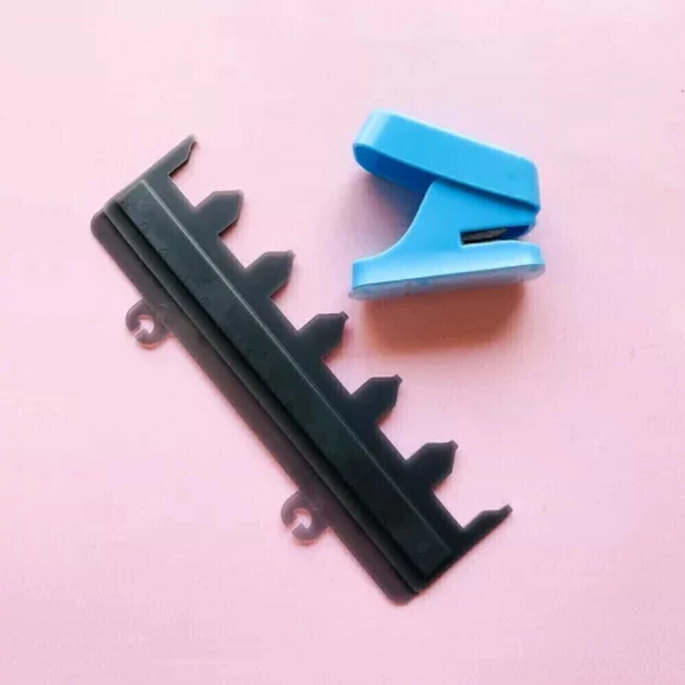 • EL blister aparte de la abrochadora trae una regla de posicionamiento de plastico para una correcta distancia entre perforaciones.