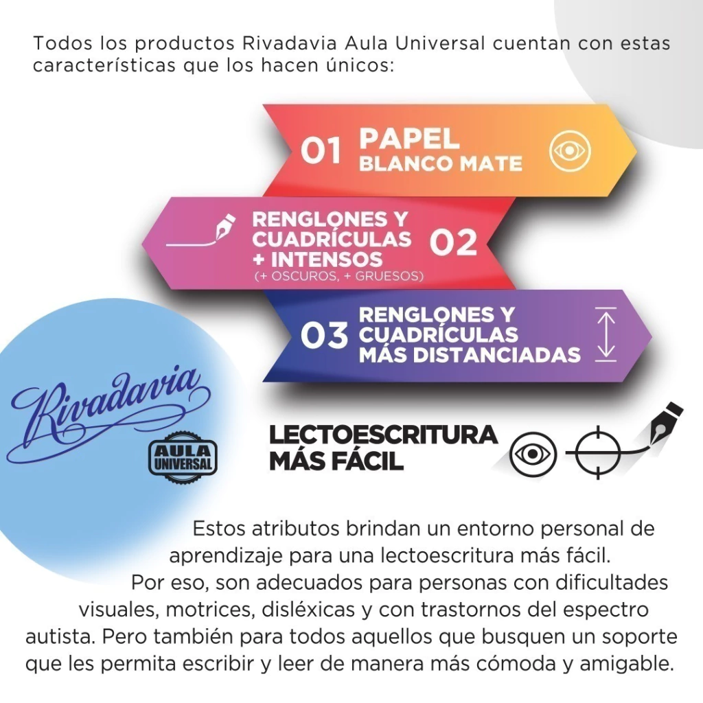 Con banda protectora en el dorso de las hojas, aula universal, lectoescritura mas facil